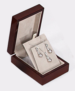 Glossy Rosewood Finish with white faux Leather Interior, Earring/Pendant Box 3 1/8' x 4' x 1 7/8' H