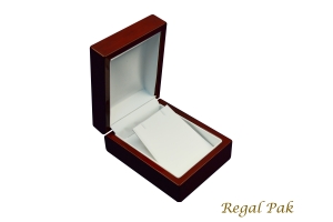 High Glossy Kona Finish Wood box with deluxe Tan Suede interior, Pendant Box 3 1/4" x 4 1/4" x 1 7/8" H