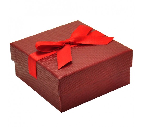 Red Woven Texture with soft White Leatherette interior w/Ribbon Packer, Pendant Box 2 1/2" x 2 3/4" x 1 3/8' H
