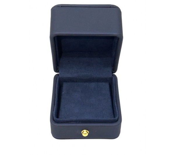 Dark Blue Faux Leather Earring Box with Gold Knob, 2 1/8" x 2 3/8" x 1 7/8" H