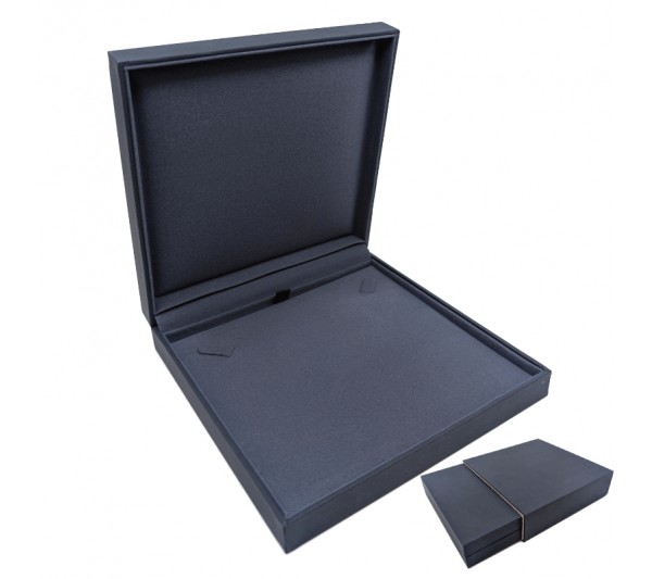 Premium slide in necklace box in dark blue color.